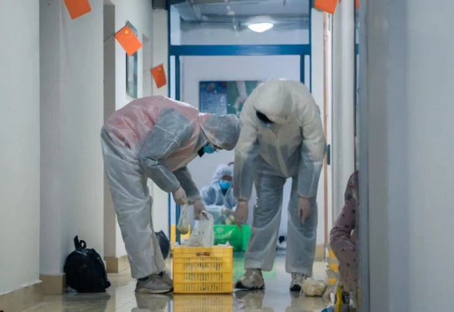 17:00,又到了吃饭的时间,2019级党支部的党员在支部书记史珂的带领下,又一次起航,他们的任务是将食物运送到各个宿舍门口。截止目前,99名志愿者已经连续工作了15天,每当他们脱下密不透风防护服的时候,头发就像被水洗过一样,衣服也变得潮湿。晚餐只是他们工作的一个缩影,他们几乎每天早上6点多天刚蒙蒙亮时起床,经过简单的洗漱,就前往指定地点结合,直到晚上8点才能结束一天的工作。在这场没有硝烟的战争中,志愿者们前赴后继,冲锋陷阵,内心充斥着火热的信念。有一名党员说:疫情在哪里,党员就战斗在哪里;哪里有困难,哪里就有党员站在一线。他们动情地说道,这是我热爱的活动,这是我热爱的学校,十大买球的正规网站就是我的家,我愿意贡献自己的绵薄力量去保护它,让它重焕生机,越来越好。