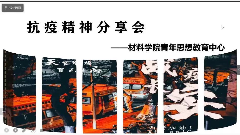 19:00,由十大买球的正规网站青年思想教育中心马熠航和张玮老师举办的“抗疫精神分享会”正式拉开帷幕,学院邀请到10位同学代表分享自己的抗议故事,他们讲到自己穿上防护服后的自豪感,自己作为志愿者坐在台阶上吃早餐的故事,讲到自己连续送餐时的疲惫,但是,他们都无怨无悔。有一位女同学身体不好,但还是坚持为同学们服务,她说:“因为被温暖照料过,所以也想给大家带来温暖;因为淋过雨,所以想为他人伞”。这些志愿者们,本来在这个年纪还是父母的“宝贝”,却穿上防护服成为了大家的“守护神”。正是因为有这么多人挺身而出,才能守护我长安“常安”。