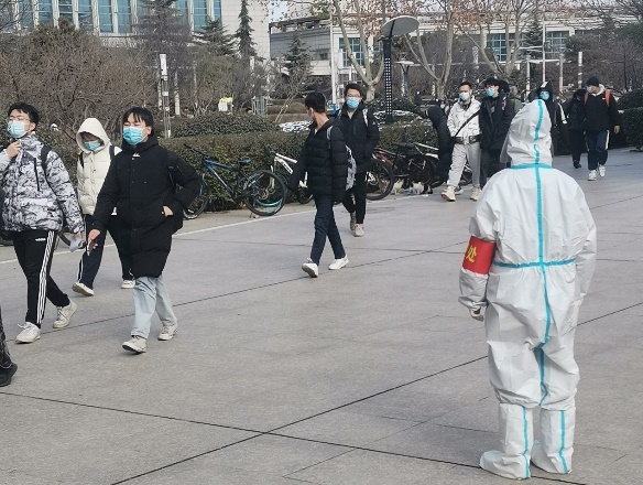 在学校中,她毅然决定奔赴校园“抗疫一线”,长期负责12号及13号公寓楼的核酸检测,在岗期间主要负责分发一次性采样器和维护现场秩序,每日到岗工作已经成了她的常态。即使深冬寒风入骨,但吹不灭内心灼烧的信念,在她心中,正是这份信念支撑她站着这里的每一分钟,延续了持久投入此次抗疫志愿活动中的动力,凝聚了攻坚克难与疫情战斗到底的决心。