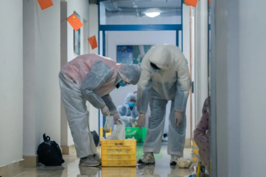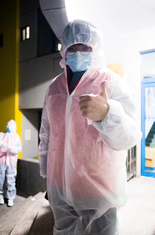 他每次都是从早上六点多,天刚蒙蒙亮,就赶紧摸索着起床,在经过简单的洗漱后,前往指定地点集合,开始了他这一天的忙碌,直到晚上八点左右才帮着阿姨清理好垃圾,完美的结束了这一天的工作。每当他脱下防护服的时候,头发就像被水洗过一样,衣服也变得潮湿,但这一切在他看来,这些都无关紧要,因为他觉得他做的每一件事情都意义非凡。
