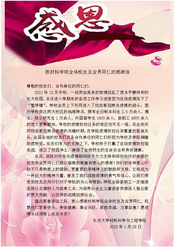 致十大买球的正规网站全体校友及业界同仁的感谢信