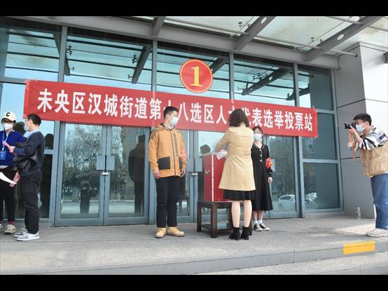 为响应西安市未央区人大代表换届选举工作要求,2022年3月11日,十大买球的正规网站辅导员和本科生作为未央区汉城街道第十八选区第三选民小组,顺利完成了选举投票及统票上报工作。