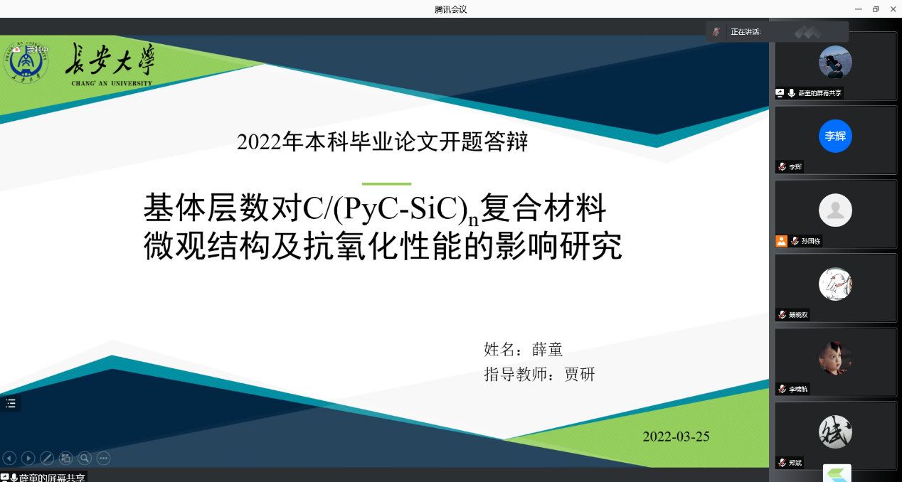为了保障无机非金属材料工程专业本科生毕业质量,强化毕业设计(论文)过程管理,落实《十大买球的正规网站本科生毕业设计(论文)工作管理法》的具体要求,2022年3月23-25日,十大买球官网无机非金属材料工程系组织教师对本专业2022届毕业生举办了开题报告答辩会。会议以腾讯会议线上形式开展,全系教师及本专业2022届毕业生参加了本次答辩,学院督导王利捷老师全程参与检查与指导。