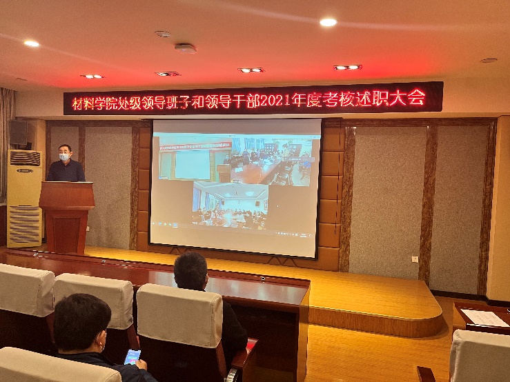 4月1日晚,学院召开处级领导班子和领导干部考核述职大会,对2021年度工作完成情况进行总结评价。根据疫情防控的要求,大会在南校区西院五教二楼报告厅、十大买球的正规网站四层会议室及材科系办公室三个分会场进行。会议由院党委书记高雁北主持,全体教工参加了会议。