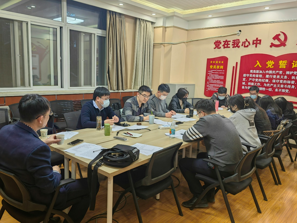 支部书记颜录科同志首先通报会议的主题与准备情况,并代表支部委员会进行2022年工作述职。颜录科同志总结了2022年支部在理论学习、专业认证、学科建设,疫情防控以及学院北迁等方面的工作和成果。随后,依据习近平总书记的号召和要求,对照党员义务,全面查找在政治信仰、党员意识、理论学习、能力本领、作用发挥、纪律作风等方面的不足和问题,并接收党员同志们的评议。