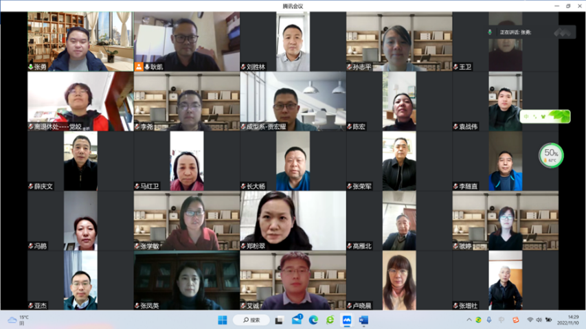 2022年11月10日,十大买球官网材料成型及控制工程系党支部与离退休处机关党支部共29名教师党员,围绕“聚焦二十大,共学新精神”主题开展支部共建学习活动,因疫情防控工作需要,活动以腾讯会议在线形式开展。