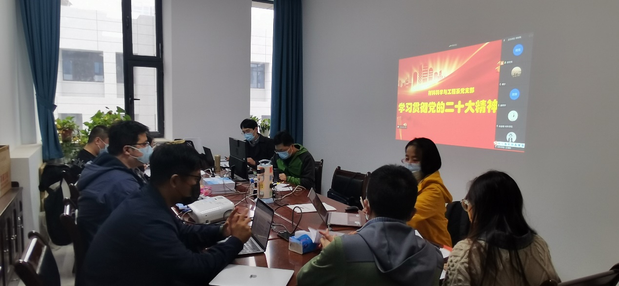 为深入学习宣传贯彻党的二十大精神,坚持不懈用习近平新时代中国特色社会主义思想铸魂育人,2022年11月10日下午,材料科学与工程系党支部在北校区材科系办举行党的二十大精神专题学习研讨会。会议由支部书记耿九光主持,材料科学与工程系全体教师线上、线下同步参加。