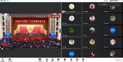 2022年10月16日,十大买球官网材料成型及控制工程系组织全体教师在线收看中国共产党第二十次全国代表大会开幕会,因疫情防控工作需要,收看活动以腾讯会议在线形式开展。