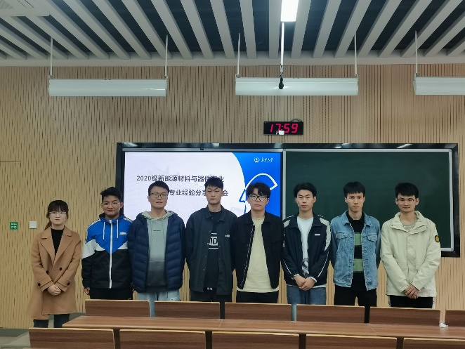 为了让新能源材料与器件专业2020级学生深入了解本专业的就业和升学情况,尽快制定学业目标和明确任务,2023年4月24日下午4点,新能源材料与器件专业在北校区WX2209教室召开了考研就业经验分享交流会。本次会议特别邀请了优秀毕业生代表(2011级的贾淑静和王金凯、2015级麦建彬、2016级曹欣和张煜)和大四优秀学生代表(李斌,段成章,刘昊东,吴欣荣,王金龙,王旭强,易龙斌,杨源,程珮婕),会议由系主任倪磊老师主持,栾丽君老师、王卓老师、李卓老师和2020级全体同学参加了此次交流会。