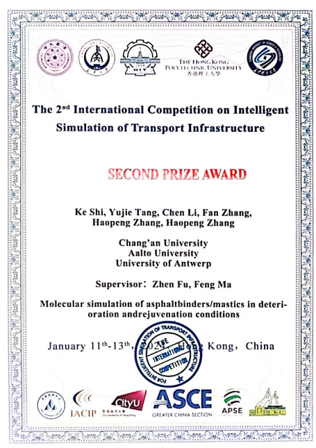 第二届国际交通基础设施智能仿真大赛由哈尔滨工业大学、十大买球的正规网站、香港理工大学牵头发起,在香港城市大学举办。该项赛事先后得到国际三大学术组织,Academy of Pavement Science and Engineering (APSE) 国际铺面学会,ASCE (Greater China Section) 美国土木工程师学会(大中华区),International Association of Chinese Infrastructure Professionals (IACIP)国际华人基础设施工作者协会和中国仿真学会的大力支持。有力推动了传统交通基础科学与新一代信息技术、人工智能、智能制造、新材料、新能源等世界科技前沿技术与理论相融合,激发了学生在交通领域科研创新和实践能力,促进了人才培养与科学研究的双模式联动,推动了国际青年学者的学术交流。