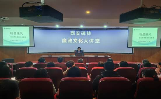 在西安碑林博物馆廉政教育基地,大家先后观摩学习了《石台孝经》《官箴碑》等与廉政文化相关的数十方古代碑刻,集中观看了廉政警示教育短片《清风正气,镂石成金》,聆听了贺华研究员的党风廉政教育专题党课。