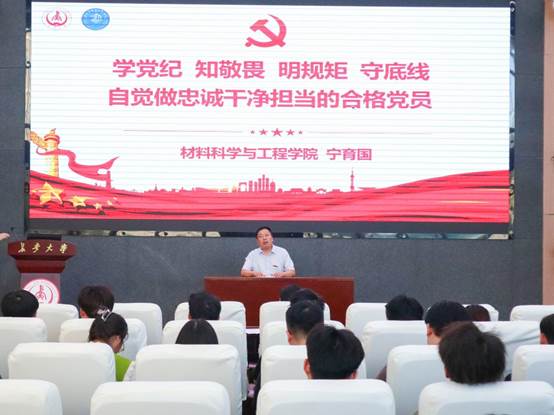 宁育国为毕业生党员作了题为《学党纪 知敬畏 明规矩 守底线 自觉做忠诚干净担当的合格党员》的党纪学习教育专题党课,强调了开展党纪学习教育的重要意义,呼吁大家在毕业离校之际,牢记党员身份发挥榜样引领作用。他要求全体毕业生党员:一要严守党的纪律,坚守初心使命,做一名合格党员;二要坚定理想信念,永葆党员本色,担当起一名共产党员的职责;三要身体力行践行表率,做到文明离校、安全离校。