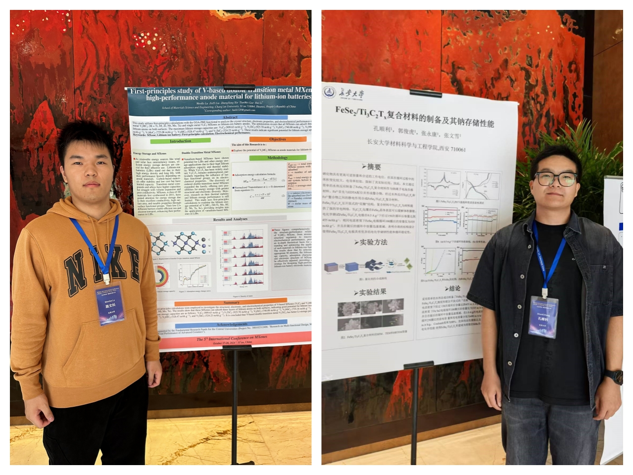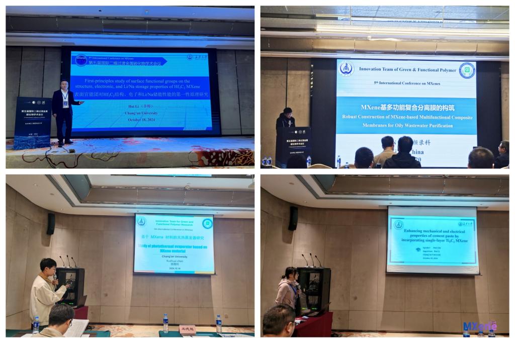 本次大会设立8个主题分会场和1个墙报展示区。会议期间,李辉和颜录科两位老师分别作了题为《First-principles study of surface functional groups on the structure, electronic, and Li/Na storage properties of Hf3C2 MXene》《Robust construction of MXene-based multifunctional composite membranes for oily wastewater purification》的邀请报告。博士生陈需帅、硕士生刘锦怡、路文科和孔顺利等分别进行了口头报告和学术墙报成果展示,以不同形式分享了十大买球的正规网站在MXene材料表面官能化、Li/Na储能、金属离子电池、多功能复合分离膜、光热蒸发器、及其改性水泥基复合材料等方面的研究成果和进展,并在与会期间与知名专家、学者进行交流与学习。