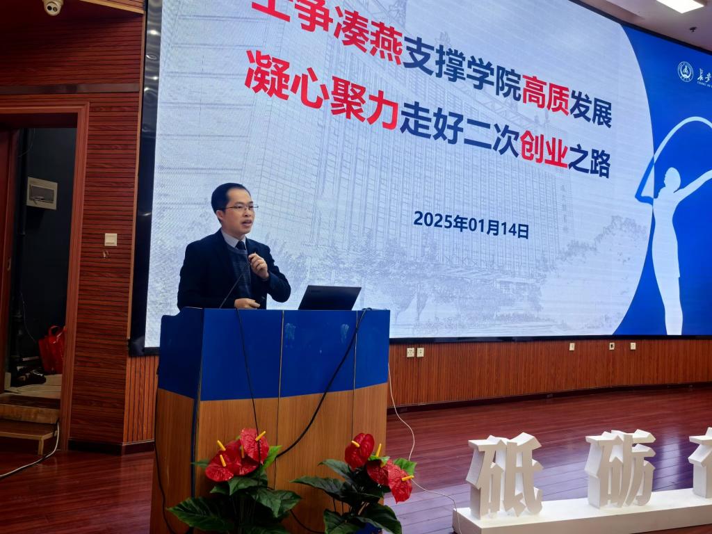 会上,院长肖月以“士争凑燕支撑学院高质发展 凝心聚力走好二次创业之路”为主题,用关键的“数字”全方位地总结了学院在党建工作、师资队伍、平台建设、学科建设、学生培养、工会事务以及博士点建设等领域的发展成果,肯定了学院科研与育人的显著成效。肖月还剖析了学院现存挑战与瓶颈,提出了着力提升服务质效、深化教师引育、优化资源整合及加强学风建设“四项工程”的有力举措,聚焦全面推动学院建设的跨越式发展。