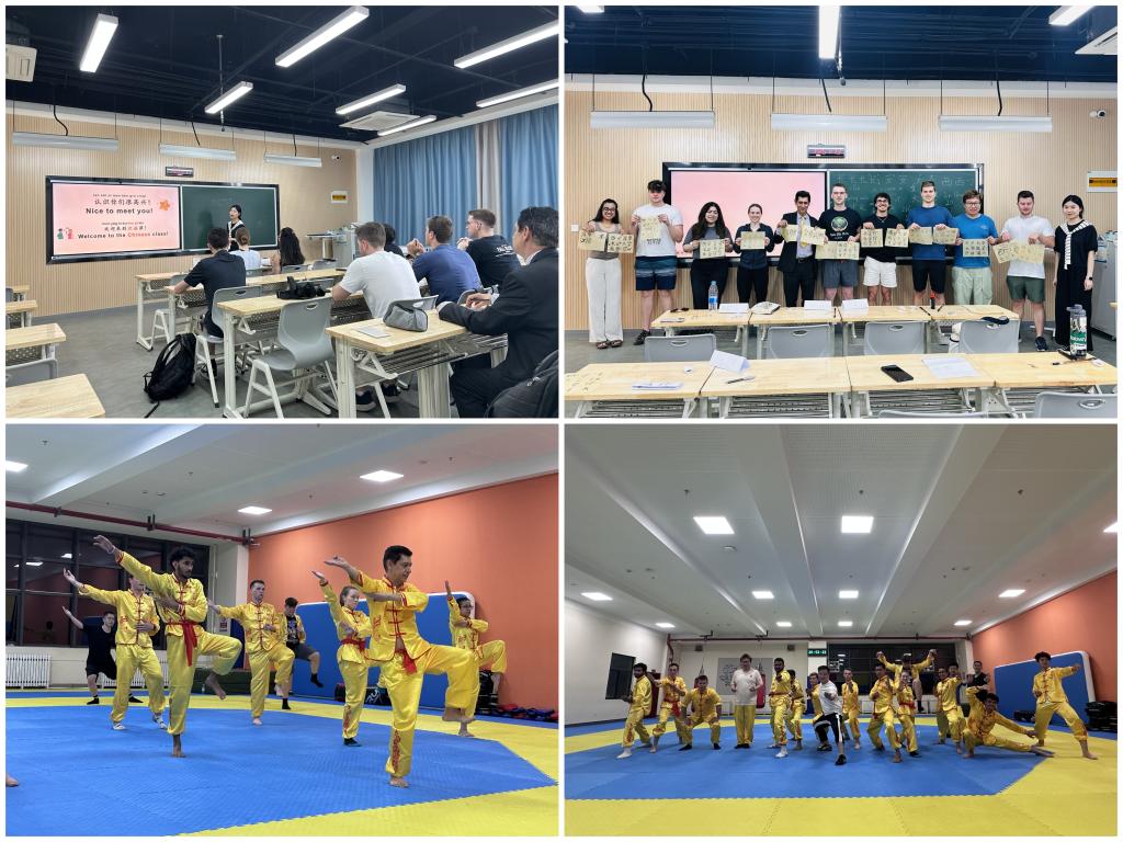 研习营不仅是一场学术盛宴,更是一扇文化窗口。在紧张的学习之余,学院联合国际教育学院与体育部精心安排了一系列文化课程,为中外学生搭建起沟通心灵的桥梁。国际教育学院郑田田老师和体育部田伟老师,根据学生兴趣和中国文化特点,分别设计了四周汉语课程及中国传统武术课程。在汉语言课堂里,UBC学子体会汉语与汉字的魅力,感受汉语中所蕴含的中国传统哲学思想与中国独特的思维方式和价值观念。在中国武术课上,UBC学子在一招一式中体味东方文化的刚柔并济,增强外国学子对中国文化的立体化理解。