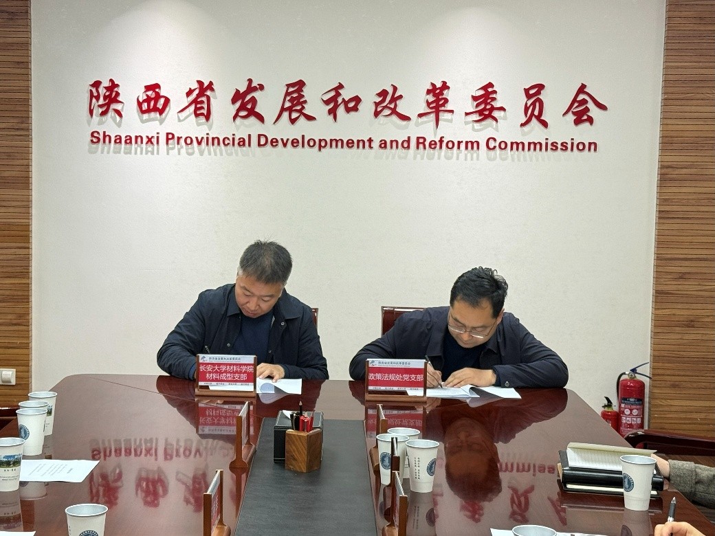 会上,在王振军、张茹亚的共同见证下,材料成型及控制工程系党支部与陕西省发展和改革委员会政策法规处党支部签订了共建协议。