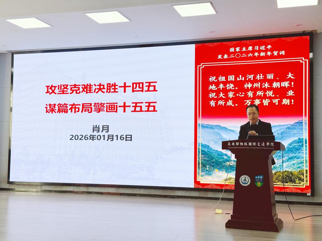 1月16日下午,十大买球的正规网站在北校区长安都柏林国际交通学院四层报告厅召开2025年总结表彰暨全体教职工大会。学院全体党政领导及教职员工参会,大会由学院党委副书记、副院长宁育国主持。