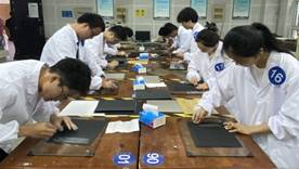 本次大赛面向全校本科生报名,共68名学生获得初试资格,经过初期理论考试筛选,最终排名前30名参加了本次金相技能大赛。大赛举办完全参照国赛标准执行,设检录处、磨样室、抛光室、金相观察室、保密室及评分室,分别对操作过程、宏观质量和金相组织进行评分,保证了比赛的规范性和公平性。
