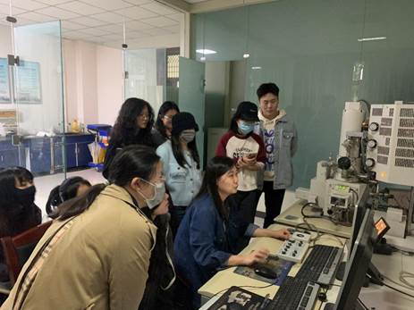 在培训过程中,实验中心教师为同学们详细讲解了扫描电镜、X射线衍射仪、红外分析仪和热重分析仪的基本情况、仪器工作原理、适用领域和详细的操作规程,对仪器设备操作要点和实验室内安全进行了重点强调,并为同学们现场演示了具体操作步骤。在培训和实操环节中,实验中心教师与同学们针对仪器设备原理与操作展开了热烈的讨论,加深了同学们对相关仪器设备的理解深度,提升了实验结果分析水平。