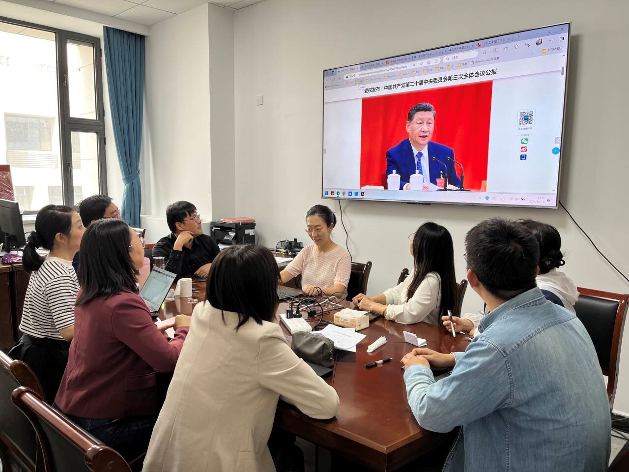 田野菲同志首先带领大家观看了《公报》的新闻报道,认真学习领会了党的二十届三中全会精神。其次引导大家学习了习近平总书记在全国教育大会上的重要讲话精神。大家一致表示,要把思想和行动统一到党中央决策部署上来,深刻领悟“两个确立”的决定性意义,坚决做到“两个维护”,锐意进取、勇毅前行,在进一步全面深化改革中展现担当作为。