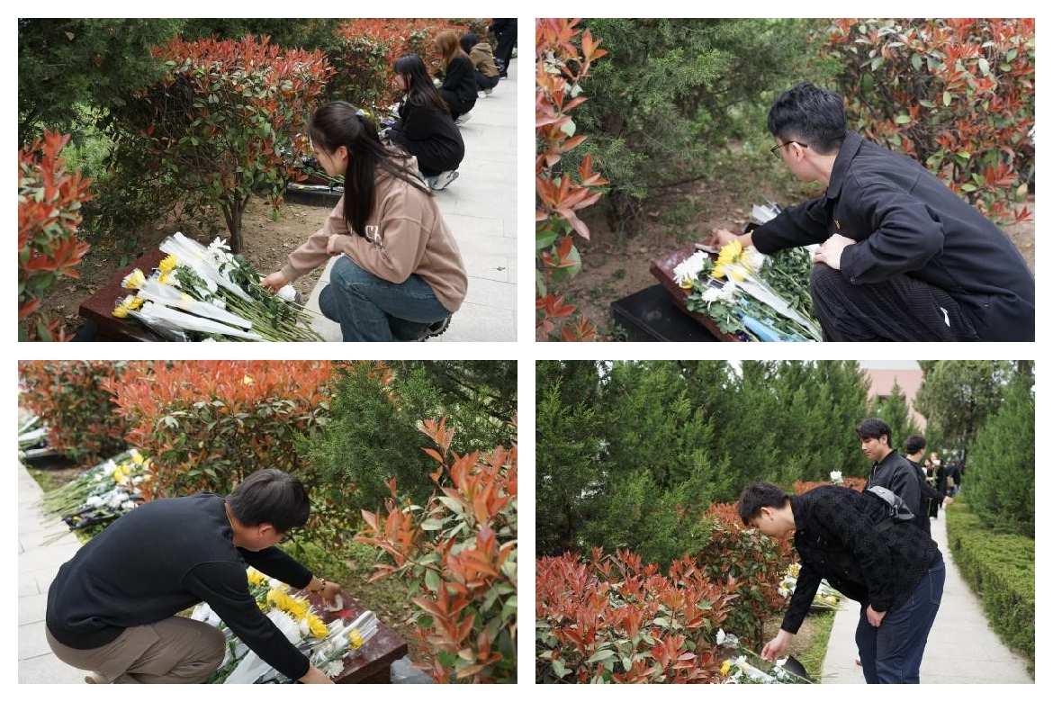 重温誓词仪式结束后,党员们依次走向烈士墓区,将手中素白的菊花轻轻放在墓碑前。每一块墓碑都是一座精神丰碑,每一块墓碑都承载着革命先烈英勇的故事。党员们通过单手托花、鞠躬致敬的仪式,向无名英雄致以最深切的缅怀。