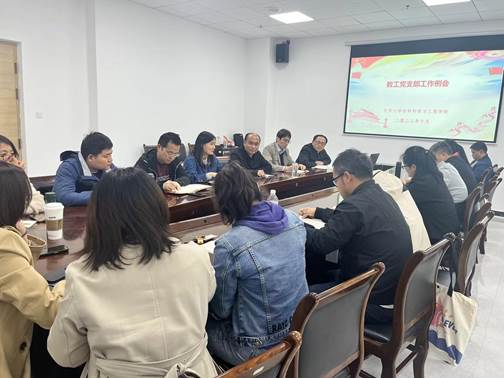 10月18日,学院在北校区材料楼401会议室召开教师党支部工作例会,学院党委书记王振军、副书记贾侃、学院全体教工党支部支委及党委秘书参加了会议,会议由王振军主持。