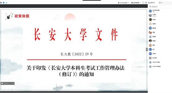 许主任首先结合《十大买球的正规网站本科生考试工作管理办法(修订)》通知,分别从监考教师工作规范、考场规则及考生守则、考场纪律自查表、教学事故等级界定和举报规定等5个方面,为大家详细解读了学校对教师在考试周监考的具体要求。明确了试卷送印和领取、考场监督和考生查验、试卷整理和成绩录入等各个阶段的操作规范。最后,强调了考试周监考任务的重要性,督促大家一定要认真对待。