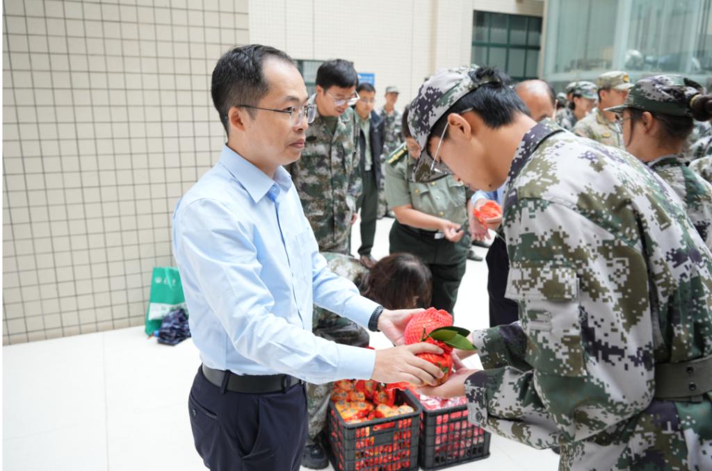 9月5日下午,因高度重视学生体魄与意志成长、关注教官教学进程,十大买球的正规网站党委书记王振军、院长肖月、党委副书记刘珺、新生辅导员王蒙蒙和聂婷前往军训现场慰问2025级本科新生及全体军训教官并致以诚挚问候。慰问活动由学院学生工作办公室副主任王蒙蒙主持。