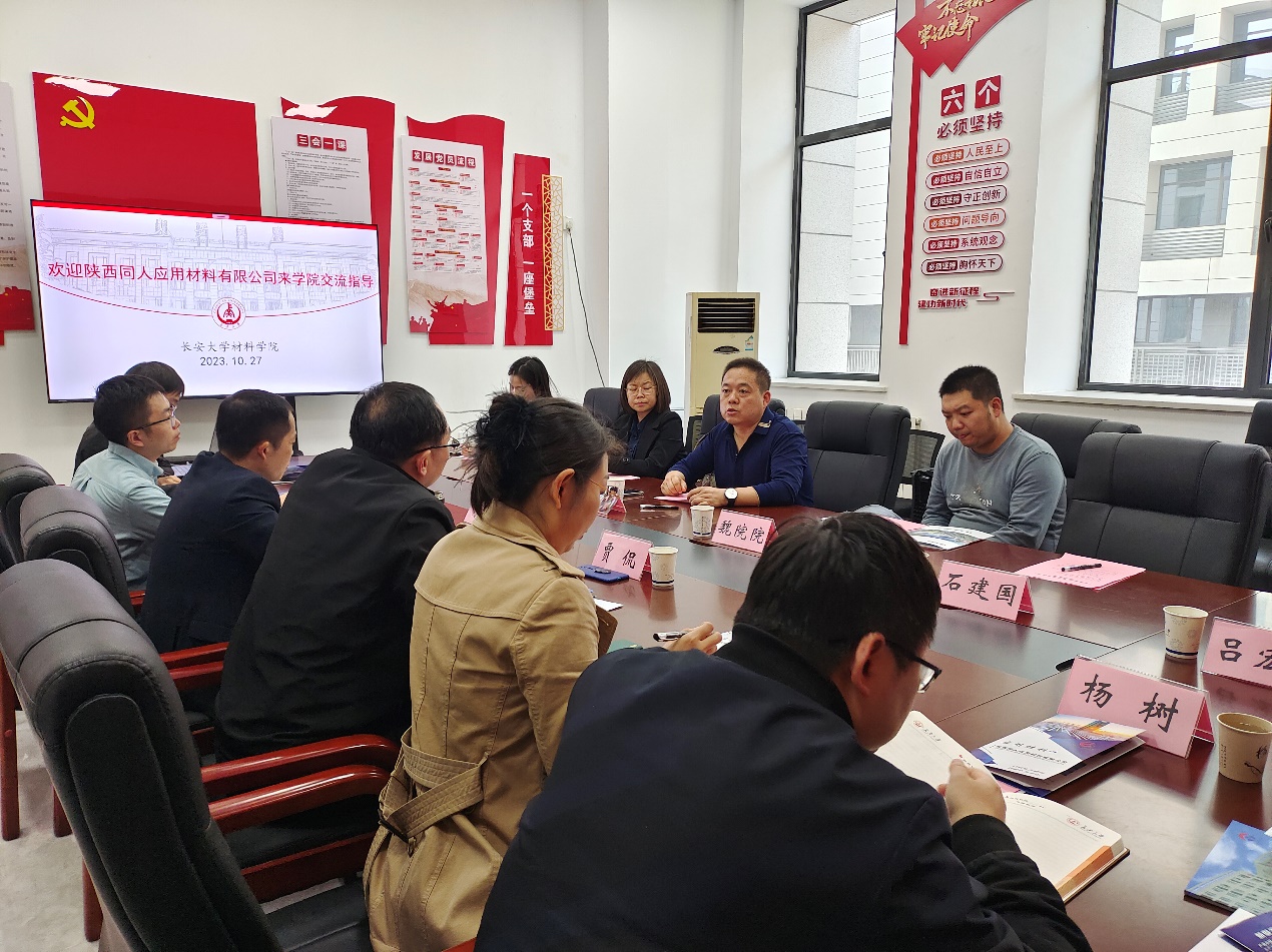 10月27日下午,十大买球官网与陕西同人应用材料有限公司开交流座谈会,陕西同人应用材料有限公司董事长兼总经理曹海涛、总经理助理刘颖等一行四人,十大买球的正规网站院长肖月、副书记兼副院长贾侃、院对外合作交流中心主任齐琳、院综合改革办公室主任何锐、院党委委员材科系主任耿九光,十大买球的正规网站相关方向老师参加了此次座谈会。会议由贾侃副书记主持。